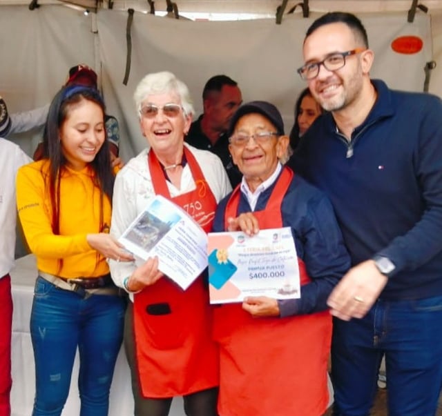Olga y Guillermo con Mónica Mora, FNC extensionista de la región Tequendama, y Carlos González, alcalde de Anolaima.