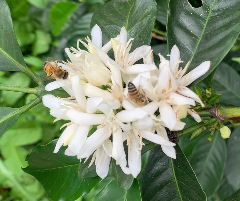 Abejas polinizando flores de café