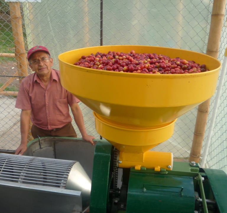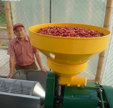 Amable y querendón, nadie como el abuelo Guillermo sabe dirigir los detalles y secretos del correcto proceso de beneficio de la cosecha del café. Mucho rigor, cuidado y disciplina invierte en sus tiempos, y paciencia en la permanente escogencia del mejor grano, para lograr así la taza limpia y comprometida con la excelencia de nuestro café Gesha.