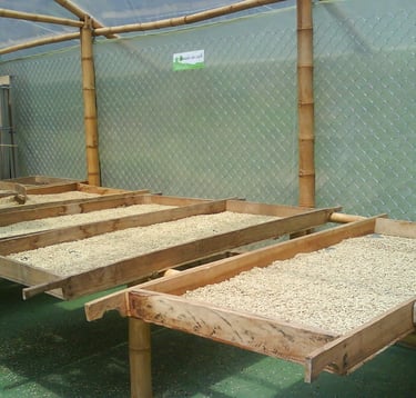 Despulpado mecánico y maduración por 20 horas antes del lavado. Empleamos aguas de nacederos locales, limpias y tratadas antes y después del beneficio. Secado solar en invernadero. Durante este proceso se aplican cinco protocolos de selección en pro de reservar solo el mejor grano a nuestro clientes, tostadores y exportadores.
