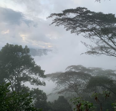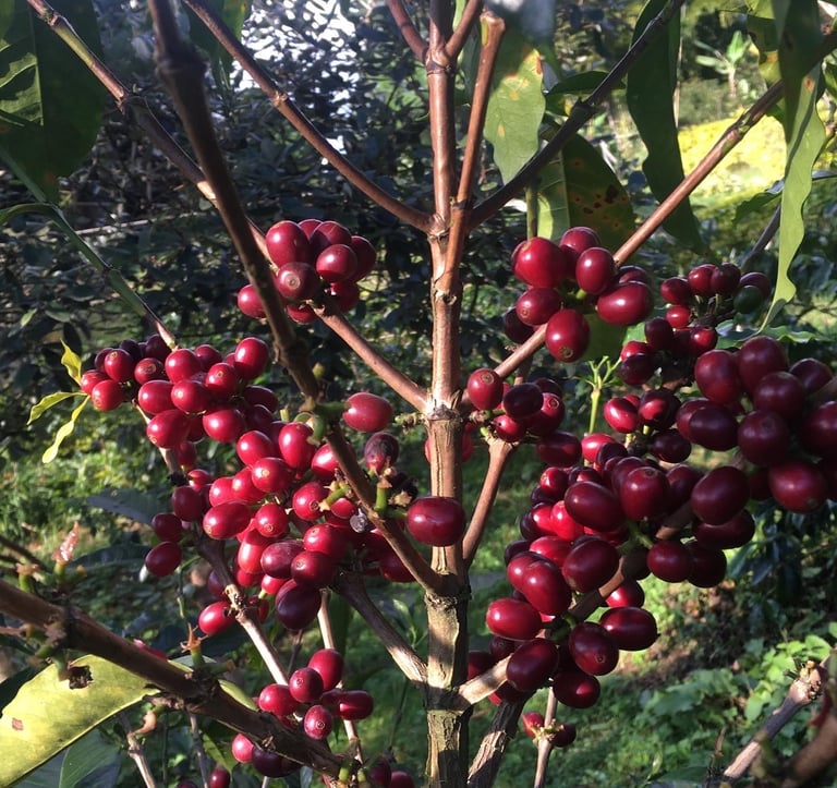 Bajo la sombra de guamos, arrayanes, galapos y otras especies nativas, crecen los arbustos del varietal Gesha, perfectamente adaptados a su microclima de montaña. La cobertura arbórea regula las variaciones climáticas y nutre permanentemente el suelo con el mulch o colchón de hojas. Tanto en sus ramas como en sus raíces el árbol da espacio a todas las formas de vida.