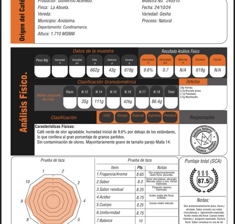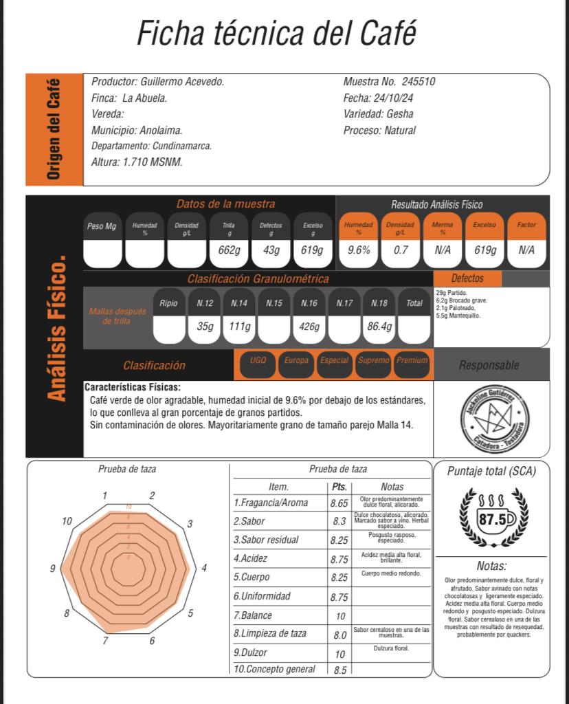 En el marco de la Feria Cafetera de Anolaima, en mayo de 2025, que organizaron la Federación Nacional de Cafeteros y la Alcaldía Municipal, nuestro café Gesha obtuvo el mejor puntaje entre los cafés de la región.